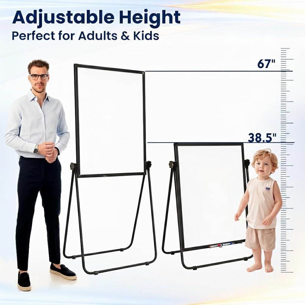 ADJUSTS TO YOUR COMFORT LEVEL – Whether you are presenting in the office or teaching at home, you can easily set the height adjustable board to the comfortable height (from 39" to 67") using the side knobs. This flexibility prevents neck and back strain by letting you work at a natural angle. It's also great for homeschooling, as the board can "grow" with your kids over the years
