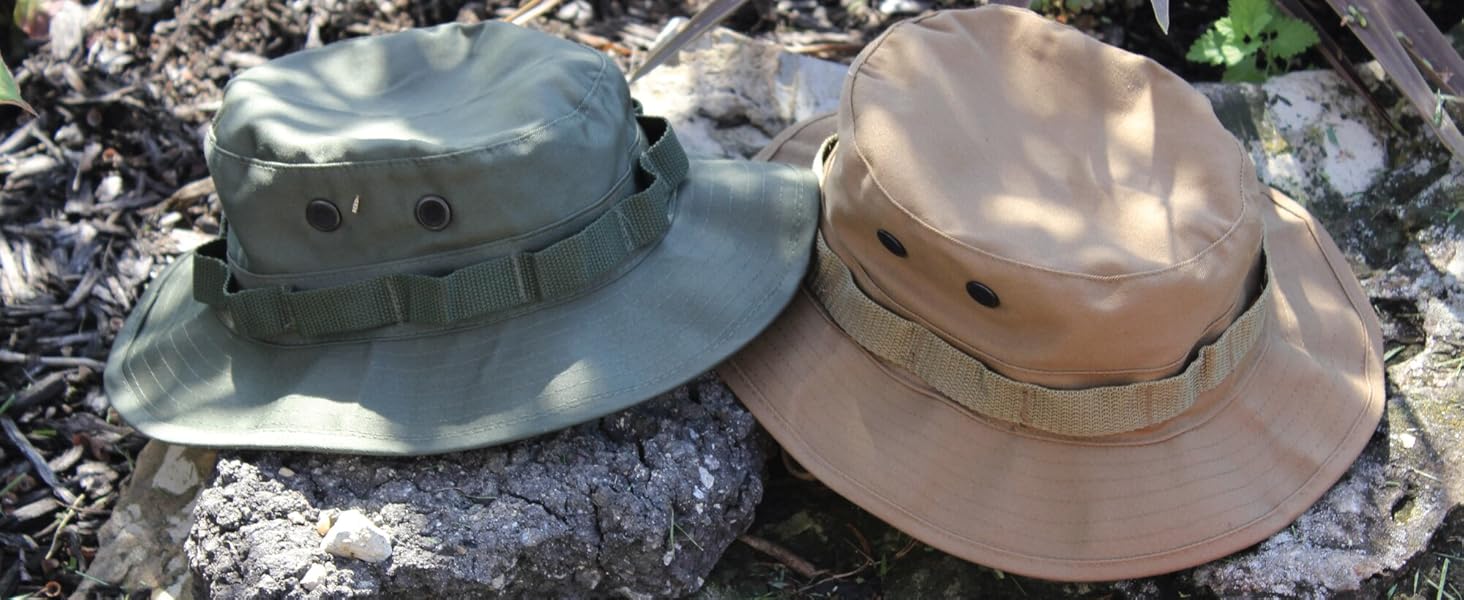 Embrace the outdoors with our Boonie Hat! Crafted to government specifications, this hat offers 360-degree sun defense. The wide, structured brim shades your neck and face, keeping you cool during outdoor activities. Made from a durable 55% cotton / 45% polyester blend, these hats withstand consistent outdoor use. Branch loops allow camouflaging with surroundings—perfect for hunting and bird watching. Four screened side vents circulate air, ensuring comfort. The adjustable chin strap secures the hat during windy days or on-the-go adventures. Dominate the sun with Rothco's Boonie Hat. Keep your head in the game with Rothco's collection of headwear and accessories. Designed with precision and purpose, our headgear is built to withstand the harshest conditions. Whether you're tackling the cold in one of our Watch Caps or Balaclavas, or out on a mission in a Boonie Hat or Fatigue Cap, our diverse range of headwear provides unmatched comfort and protection for everyone from active-duty personnel to outdoor enthusiasts.