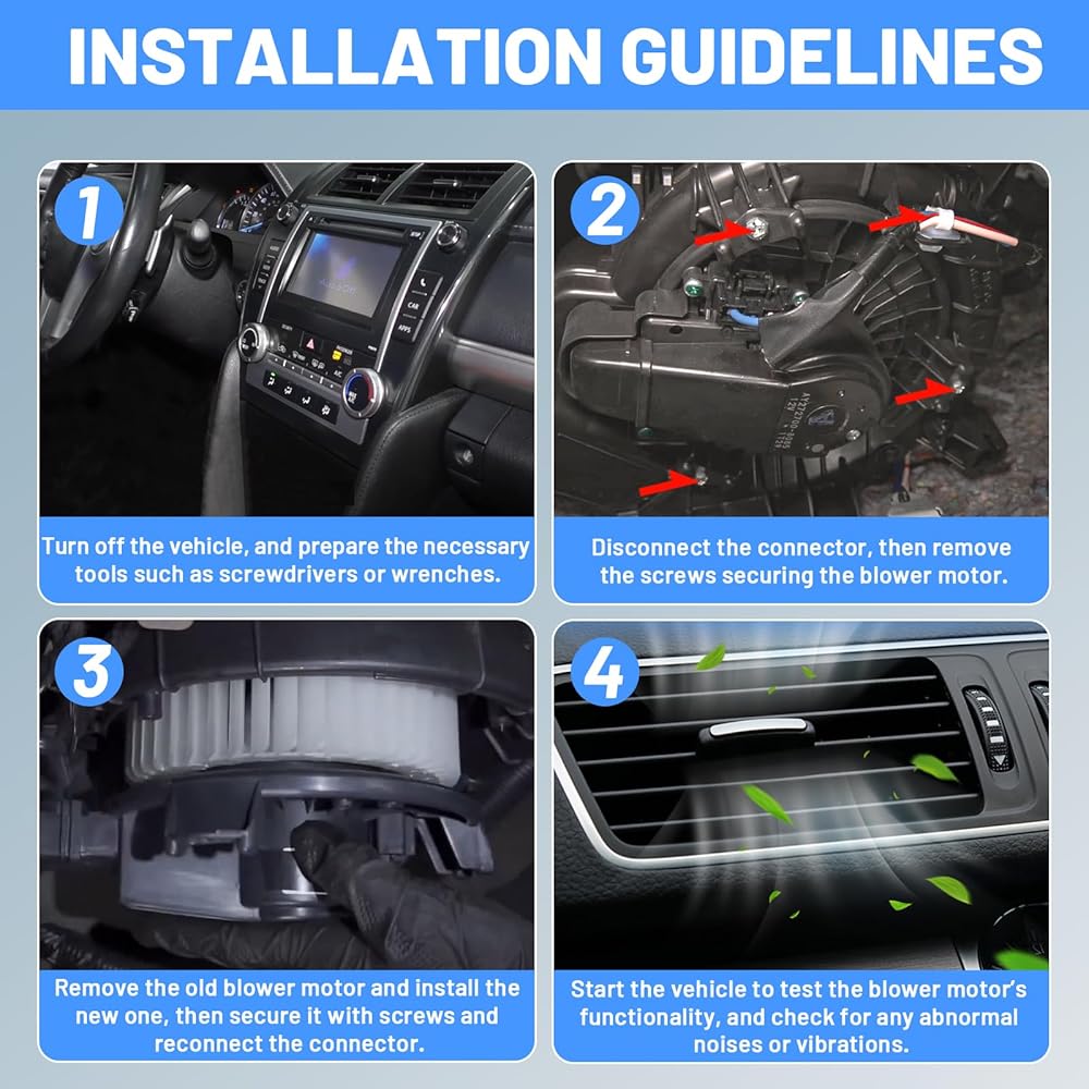 [Enhanced Performance & Efficiency]: Experience superior airflow with this energy-efficient blower motor. The upgraded fan design prevents dust buildup and delivers a larger air volume, quickly restoring fresh air inside your car. Rigorous mechanical and electrical testing ensures smooth, balanced, and long-lasting performance.