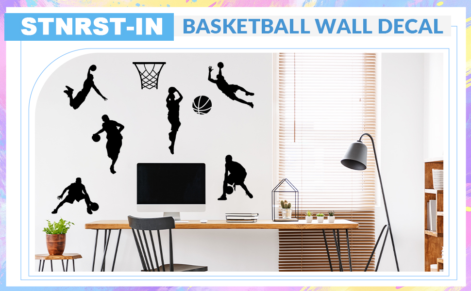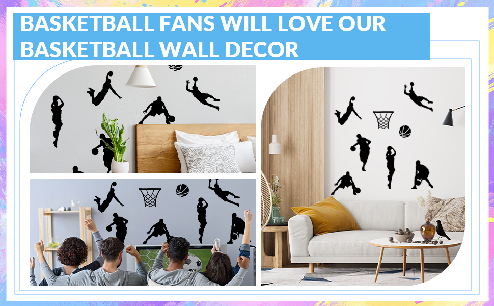 【Peel & Stick】Basketball self adhesive wall decals are easy to apply! Simply peel and stick the decal to the wall. It is recommended that you plan where you want to stick them so that you don't ruin the adhesion of the wall decals by repeating them