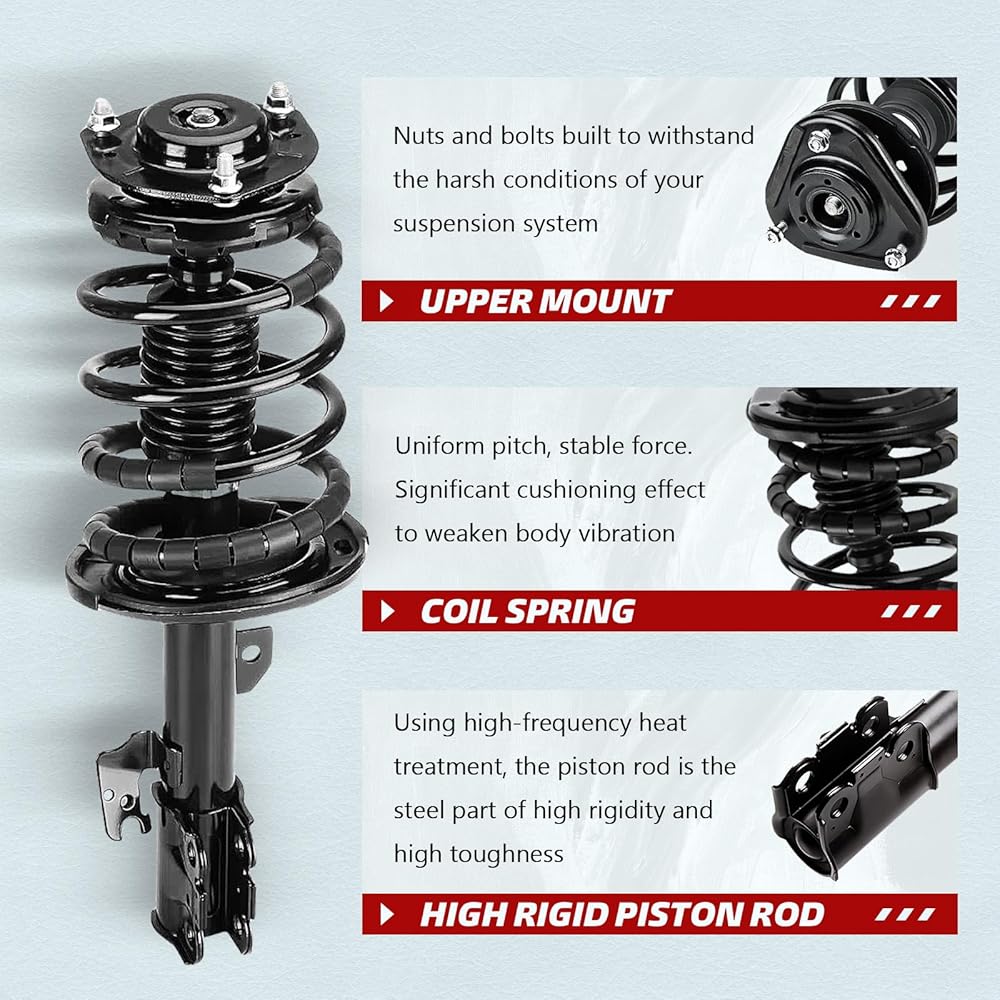 4PC Front Struts + Sway Bar Links Set - Replacement for 2012-2017 Toyota Camry Hybrid L LE XLE LE XLE - Complete with Coil Springs Assembly 2013 2014 2015 2016