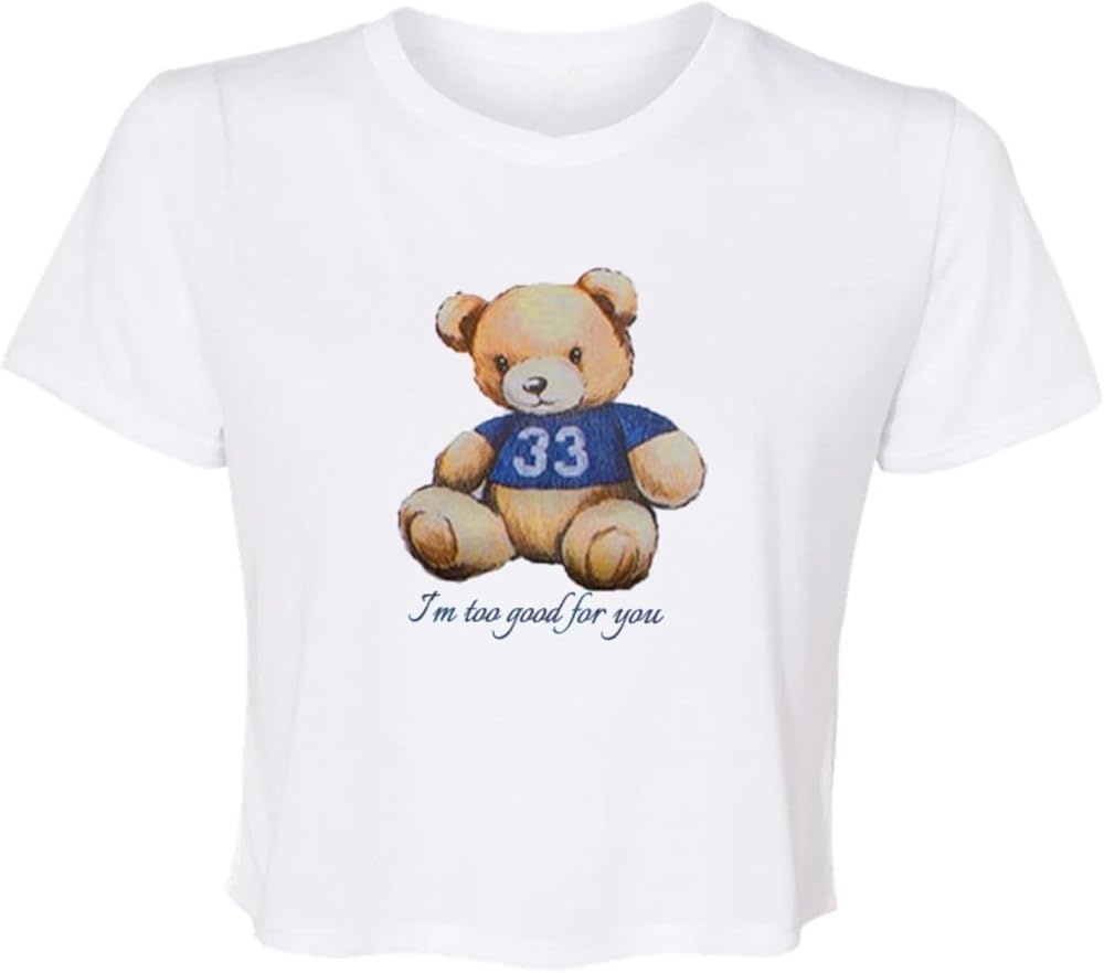 Step into the season with this Women's Y2K Cute Bear Print Short Sleeve Tight Top. Crafted from a blend of 90% polyester and 10% spandex, this top offers a comfortable, form-fitting design that stays in shape wash after wash. Available in sizes S-XL, it's designed to hug your curves while allowing for easy movement. The pure white base is adorned with charming bear prints, capturing the essence of Y2K and gothic fashion trends.