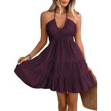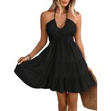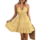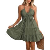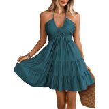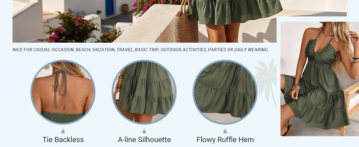 - Features: Ruffle hem, tiered, shirred, halter neck, sleeveless, ruched, halter dress for women