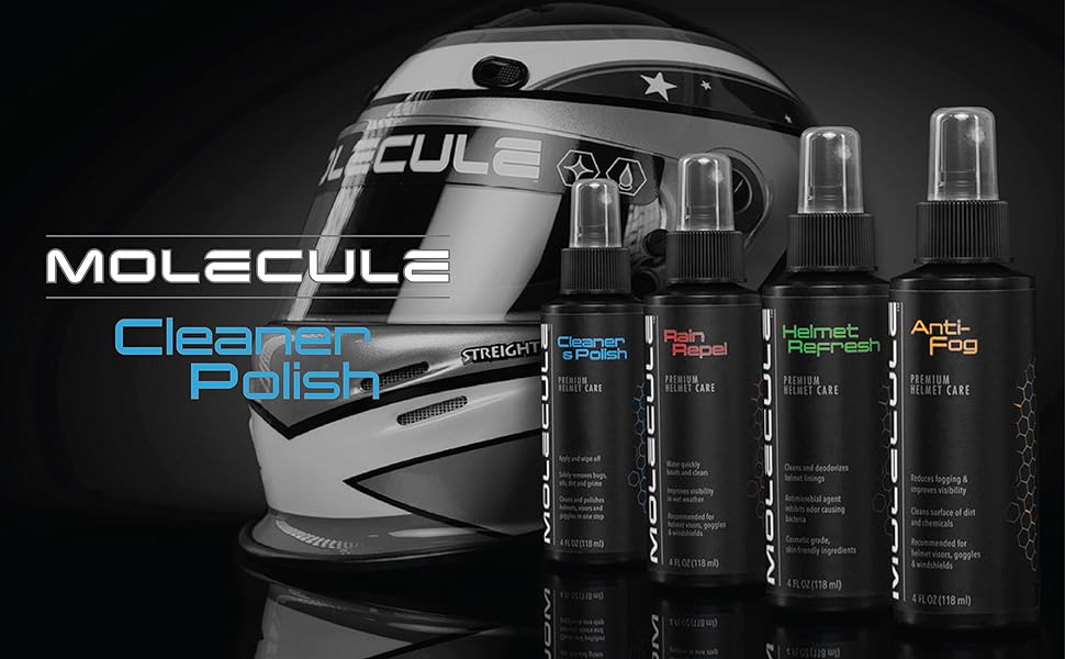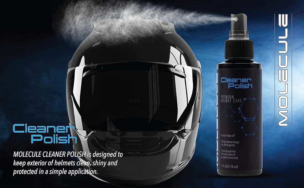 Molecule Helmet Polish Kit | Premium Helmet Care | 4 Ounce Cleaner Polish & Refresh | Cleans and Details Gloss Finish Helmets, Visors, and Goggles | 4 Ounce (1 Kit)