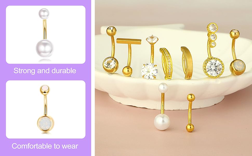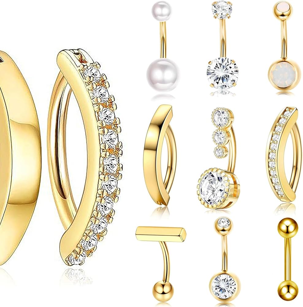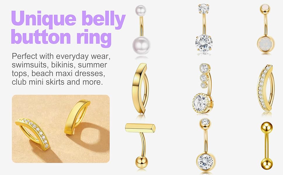 [9 Pcs Variety Set] This belly button rings pack includes multiple styles with CZ, opal, and pearl accents, giving you a range of belly button jewelry for any outfit