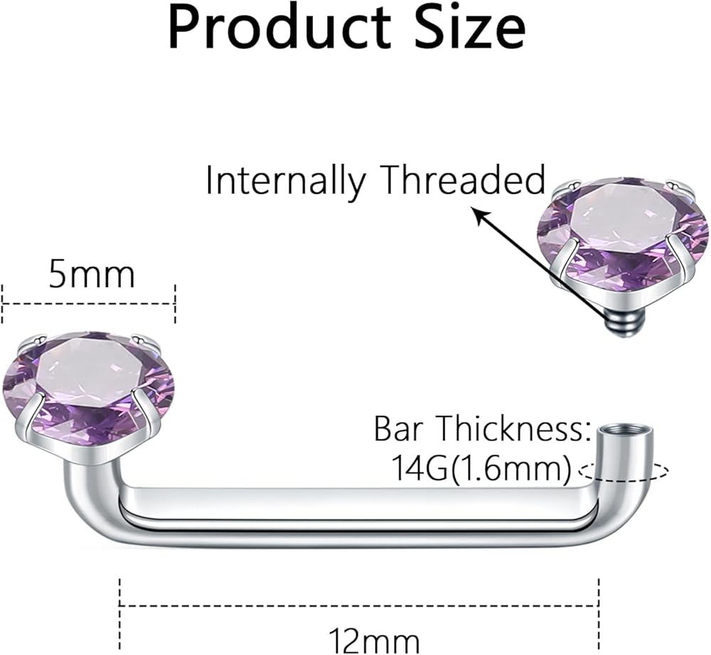 Xpircn 14G Titanium Surface Piercing Jewelry Flat Bar CZ Staple Barbell Internally Threaded Surface Tragus Staple Bar Piercing Jewelry 10/12/14mm