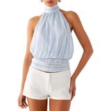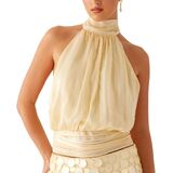 Stylish Design: Featuring an elegant cream hue, paired with gathered fabric details and a halter neckline silhouette, this women's halter top adds an air of sophistication to any outfit. The halter neckline exudes both style and versatility, seamlessly integrating the signature halter top label elements