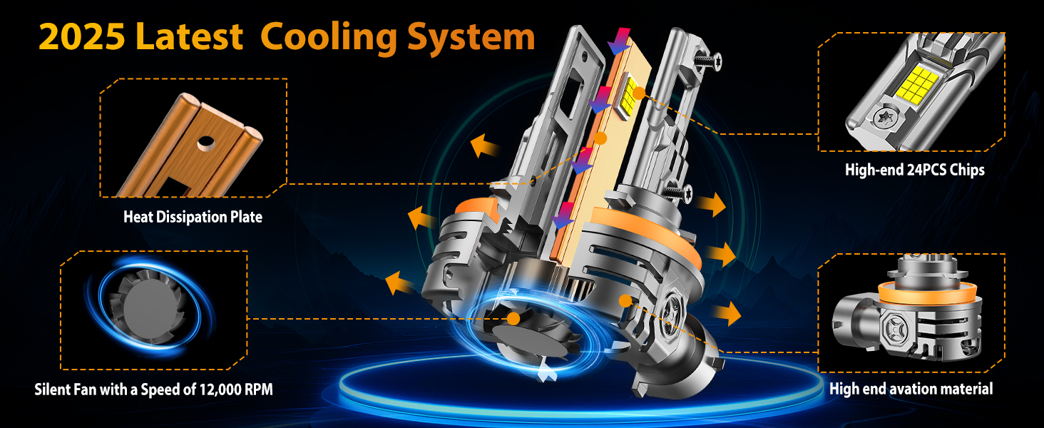 【10+ Years Longer Lifespan】Engineered with aerospace-grade aluminum alloy and a robust copper substrate for optimized thermal dissipation, combined with a high-velocity 12,000 RPM turbo-cooling fan, these H11/H8/H9 and 9005 LED bulbs deliver significantly enhanced thermal regulation. The system ensures a rated service life exceeding 70,000 hours of consistent operation with sustained luminous output. This eliminates the need for repetitive replacement cycles.