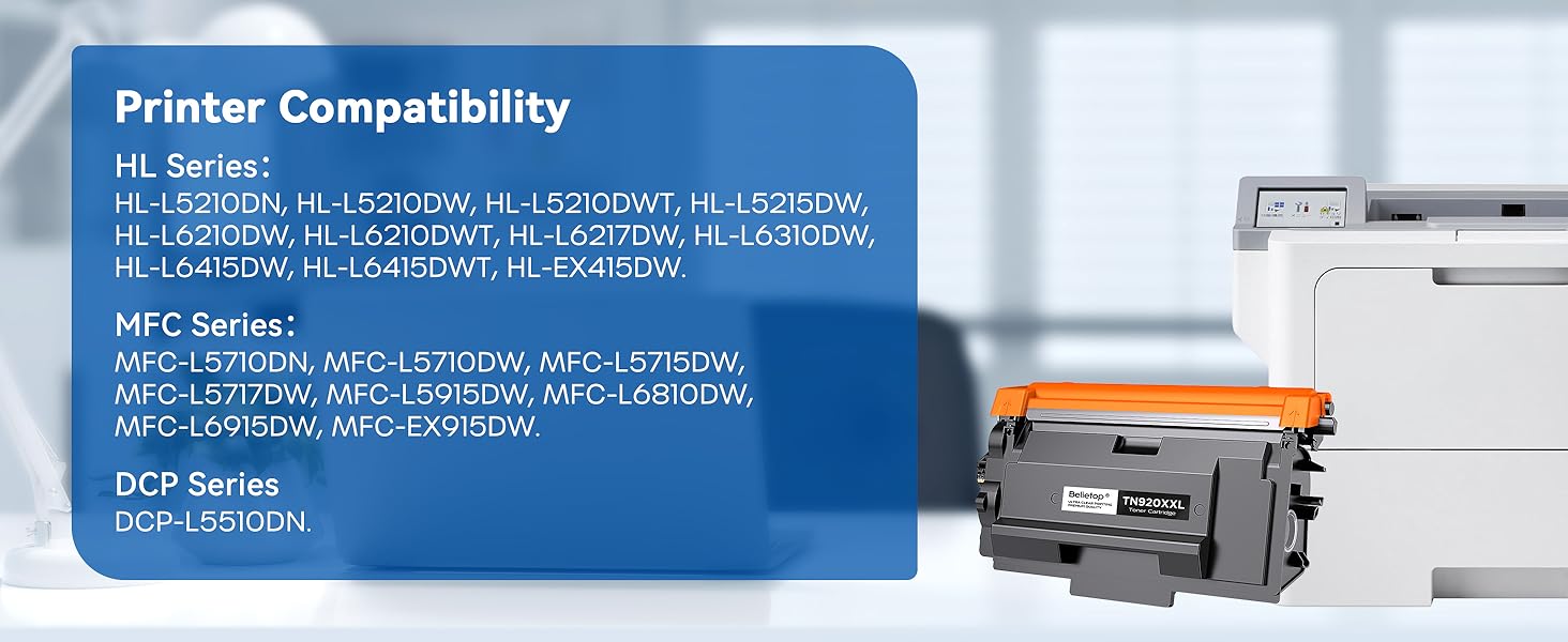 Reliable Performance: TN920XXL toner cartridge fit for brother toner TN920XXL TN920XL TN920 are certified with ISO9001 and ISO14001 for stable quality printouts, ensuring professional documents, graphics and photos.