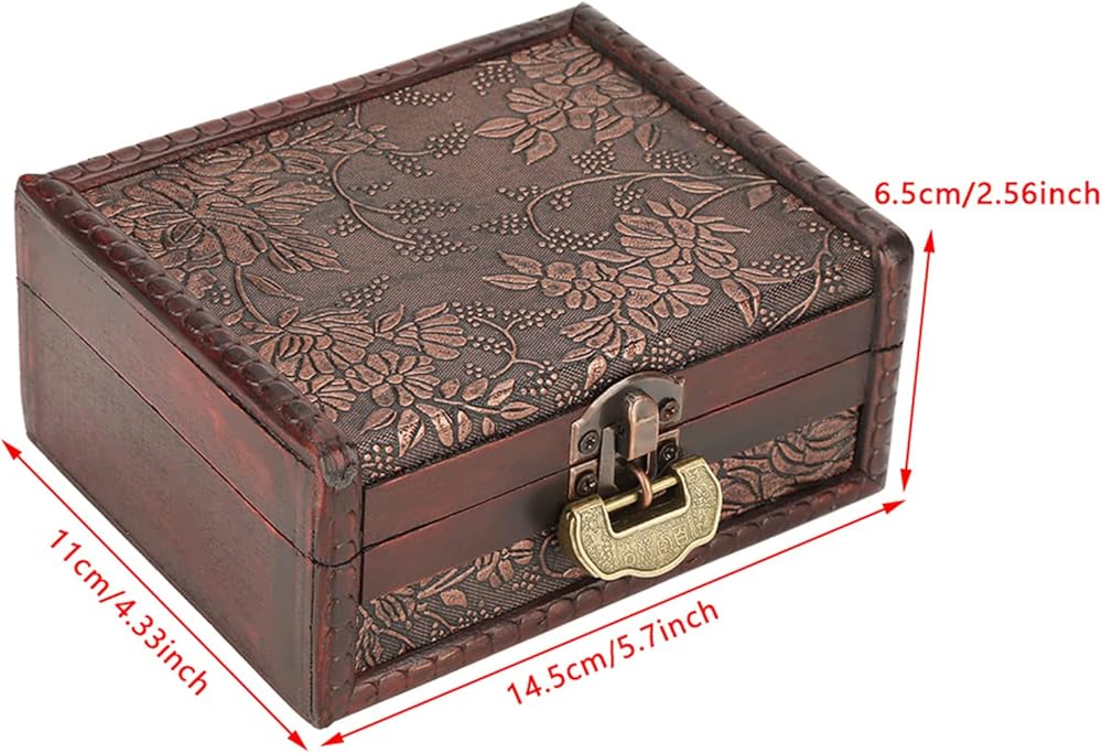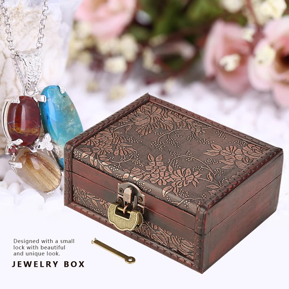 Vintage Decorative Wooden Box,Keepsake Box with Lock and Key,Jewelry Treasure Chest with Hinged Lid for Jewelry Necklace,Earrings,Rings,Great Gift(5.7 * 4.3 * 2.6in)