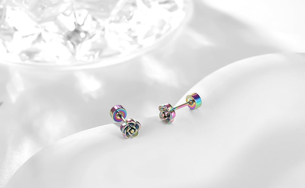 Occasion: Rose earrings plated in unique color, making you stand out in everyday life. titanium rose earrings can be wore for whether official and everyday casual, evening event, birthdays, anniversary, christmas, wedding, party and holidays