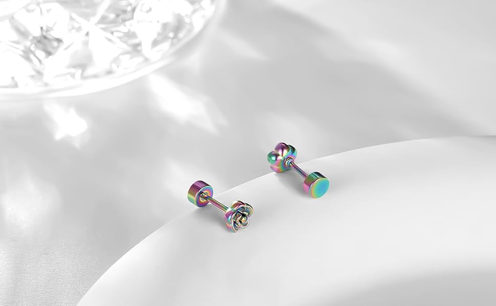 Screw Flat back Earrings: Screw back design for secure fastening. The titanium earrrings feature a threaded plus secure flat back design for extended wear,convenient to put on and take off. When you are running or dumping, our studs do not fall, very comfortable, even in sleeping