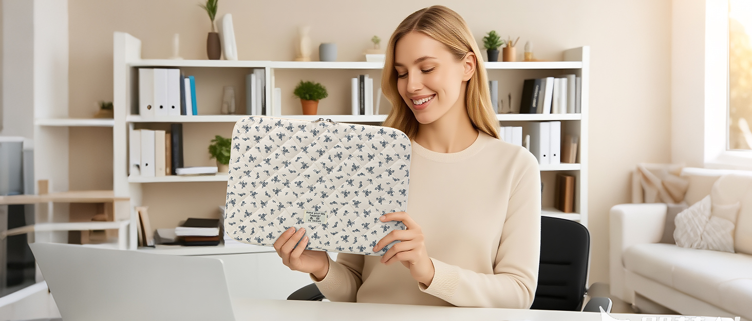 Woven Check Laptop Sleeve: This adorable laptop case features a classic check pattern, giving your laptop a timeless and versatile look that pairs perfectly with any outfit or occasion.