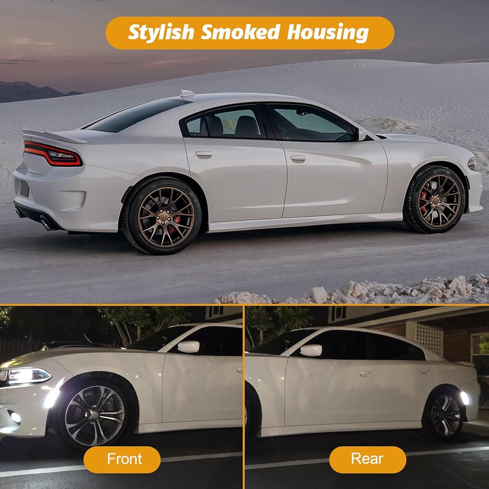 【Smoked Lens for a Cohesive Look】 Replaces the factory amber (front) and red (rear) lenses with a universal dark smoke tint. This popular upgrade provides a sleek, color-matched appearance that seamlessly blends with your Charger's body color for an aggressive, custom finish.