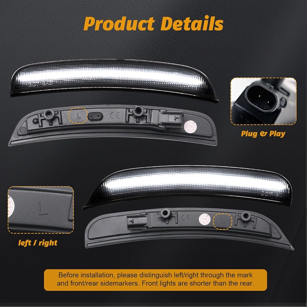 【Modern Full-Line Illumination】 Upgrade from the outdated single LED dot to a sleek, continuous light bar. Our side markers deliver a uniform, high-end line of light for a dramatically cleaner and more modern look that matches newer vehicle styles.