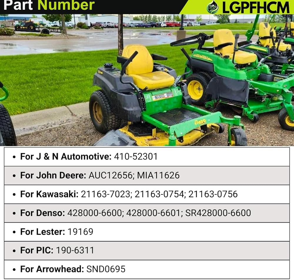 Part Numbers: For J & N Automotive: 410-52301 / For John Deere: AUC12656; MIA11626 / For Kawasaki: 21163-7023; 21163-0754; 21163-0756 / For Denso: 428000-6600; 428000-6601; SR428000-6600/ For Lester: 19169 / For PIC: 190-6311 / For Arrowhead: SND0695
