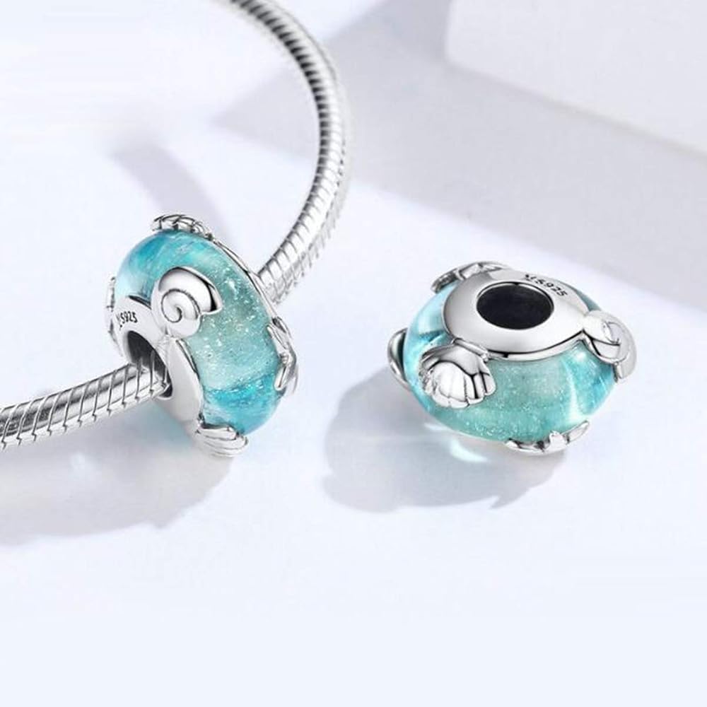 Murano Glass Beads Authentic 925 Sterling Silver Charms Core Faceted Christmas Snowflake Flower Star Glass Charms Bracelet for Women Pandora Bracelet (Blue Snowflakes Charm)