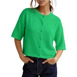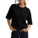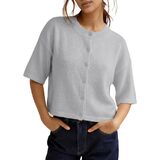Features: The short sleeve cropped cardigan features a button-down front, drop shoulder, and classic crew neck, flattering a variety of body types