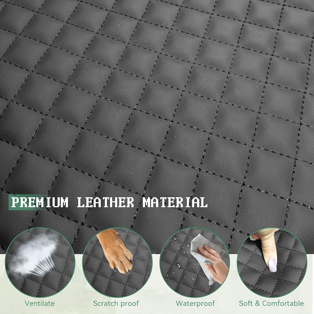 Premium leather surface resists scratches, wear, spills, scuffs, dirt and pet claws while preserving original aesthetics; wipes clean instantly, good for spilled drinks or muddy paws.