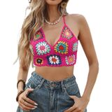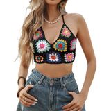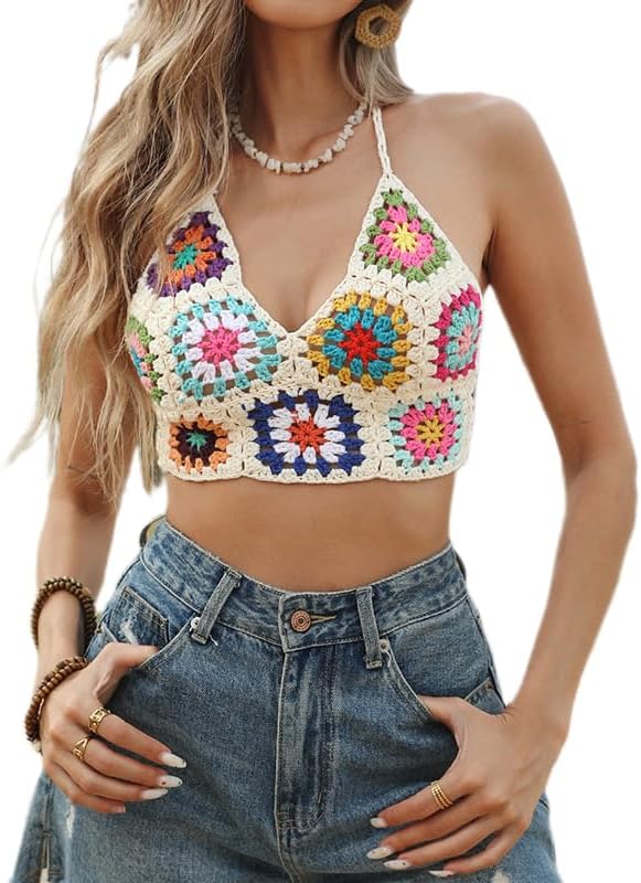Women Crochet Knit Granny Square Tank Tops Sleeveless Floral Knit Crop Tops Vintage Knitwear Vest Tops 90s Streetwear