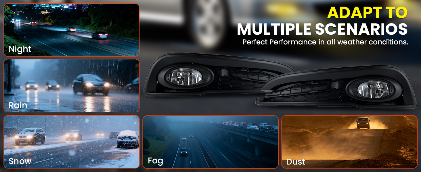 Superior Visibility: Our fog lights feature strong penetrating power, effectively reducing light scattering while illuminating a larger area ahead of the vehicle—including the edge portions on both sides of the road. This makes it easier for drivers to spot pedestrians, obstacles, or other potential hazards along the roadside.