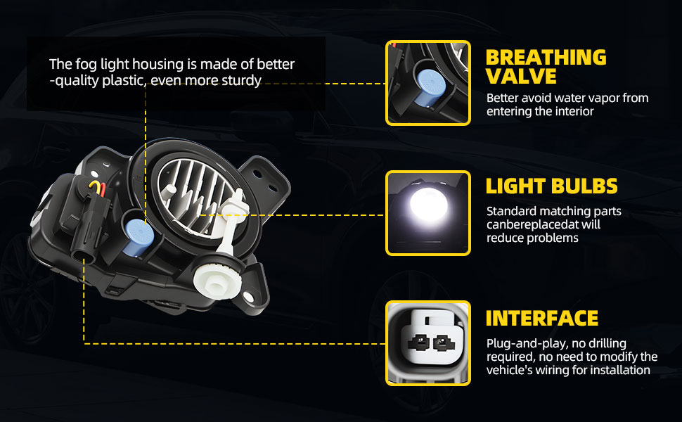 Lighting Performance: Compared with traditional halogen lamps, this fog light adopts 12V 8W bulbs with even light and stronger luminous efficiency, providing drivers with brighter light and improving driving safety