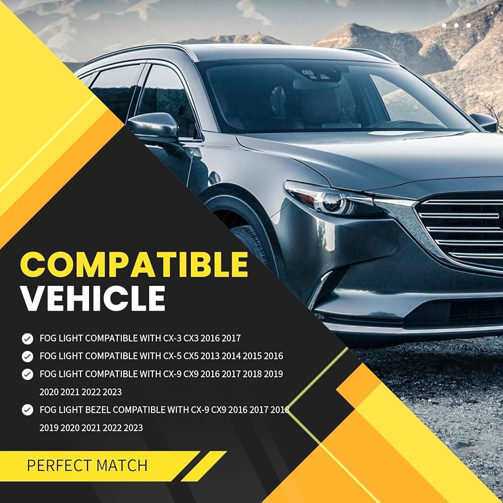 Applicable Models: Front fog light compatible with CX-9 CX9 GS-L Sport Utility 4-Door/ GS Sport Utility 4-Door/ GT Sport Utility 4-Door/ Grand Touring Sport Utility 4-Door/ Signature Sport Utility 4-Door/ Touring Sport Utility 4-Door/ i Grand Touring Sport Utility 4-Door 2016 2017 2018 2019 2020 2021 2022 2023, please check the model and year before placing your order