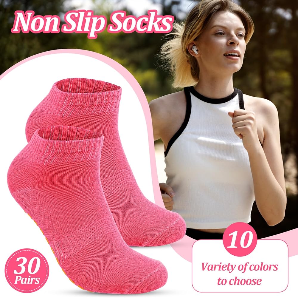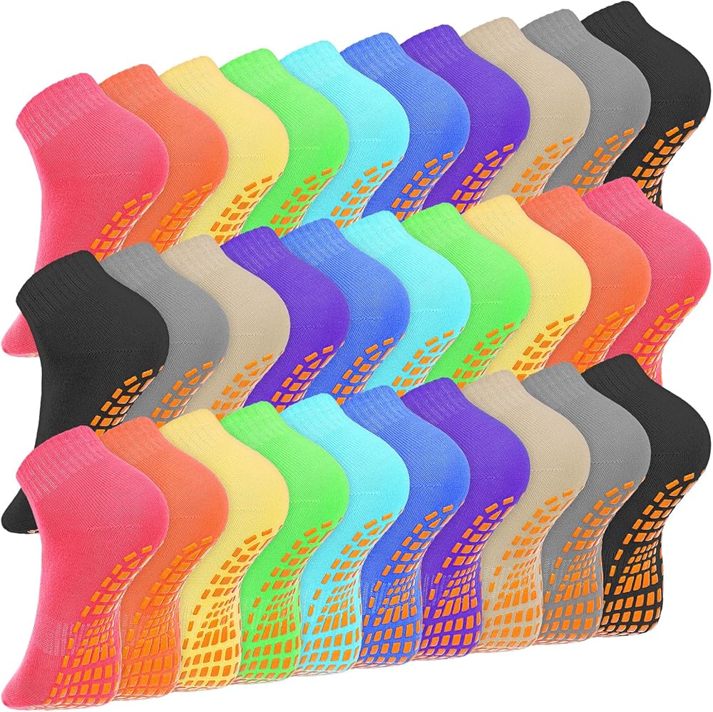 Package Contents: You will receive 30 pairs of non slip skid socks, in 10 colors (3 pairs of each color). Fun and versatile, they can be easily paired with your everyday outfits. The ample quantity makes them practical and convenient for daily use and changing, and they also make a great party gift for family or friends.