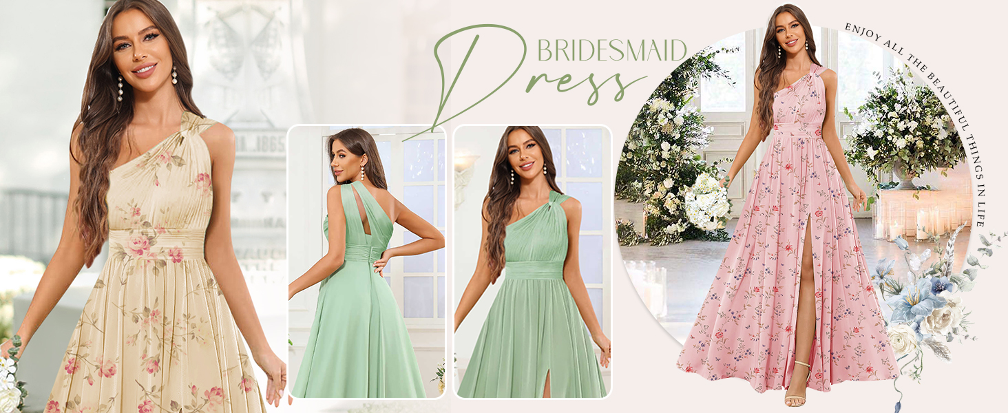 • One Shoulder Floral Bridesmaid Dresses: Wrap pleated bridesmaid dresses are made of floral chiffon, it's most ideal for our Summer, Fall, Winter, and Spring weddings, a-line chiffon dresses are the best choice for bridesmaid, this boho bridesmaid dresses are appropriate for any wedding in its modest yet stylish look