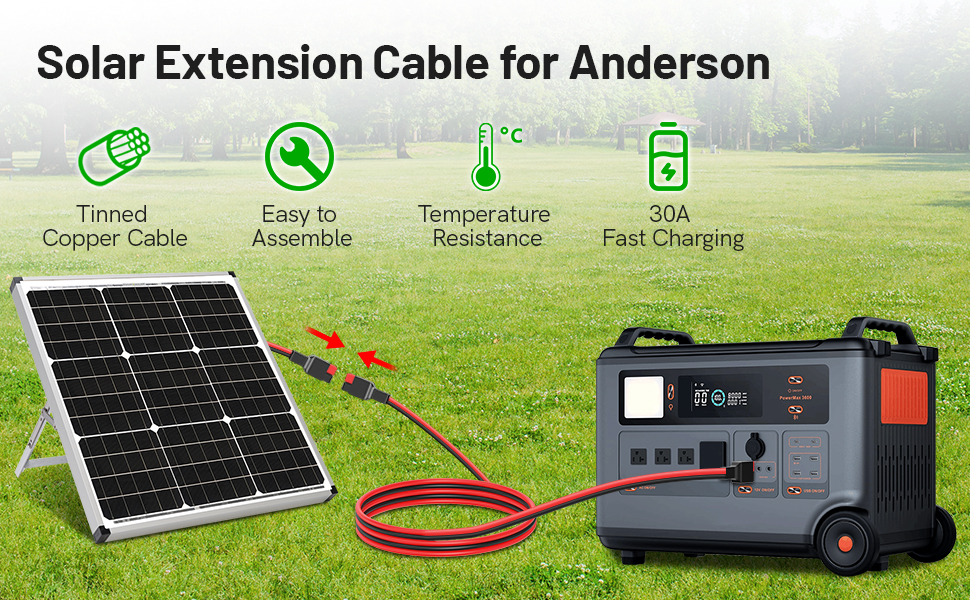 Excellent Performance - Our extension cable for Anderson connector ensures stable electricity flow, minimizing energy loss, which can secure and reliable power transfer. Rated Current: 30A, Rated Voltage: DC600V. Main Cable Gauge: 10AWG