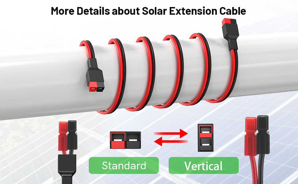 Solar Extension Cable Connector - Our power pole for Anderson extension cord separate the red and black lines, making them easier to distinguish and connect, and also easier to organize. The connector extand the reach of your solar power connections, increasing charging efficiency