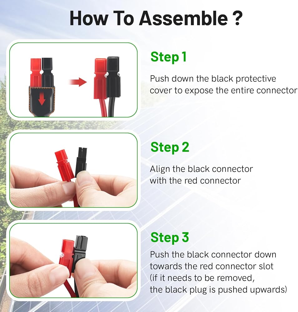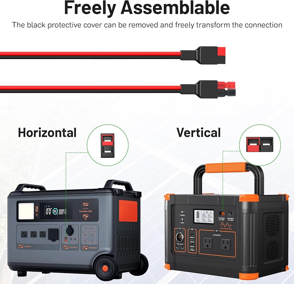 Easy to Use - There are 2 ways for Anderson-Style 30A connectors: horizontal and vertical, can be changed in shape according to actual conditions, strong connection and not easy to fall off, which ensure a tight and stable connection between the cable and your solar panels or device. Plug and play design, no tools are needed for connecting and dismantling anymore. Compatible with GZ Yeti /G500 Explorer 1000 solar generator and for Renogy, Boulder 100/200 solar panels