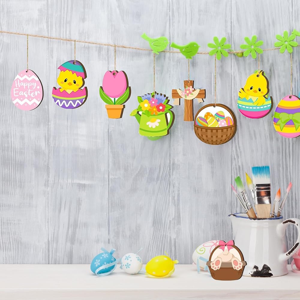 You will get 40 wooden Easter decorations, each one is a different pattern, such as rabbit, flower basket, gnome, radish, tree, etc., the wooden decorations are made of wooden material, strong enough , can be used for a long time, not easy to break and fade, each comes with a rope, you can use the rope to hang them on trees, windows, cars, etc., can bring a strong atmosphere to your Easter, these Wooden decorations can serve as wonderful presents for your partner, classmates, colleagues or neighbors, They will love this adorable Easter Bunny decoration