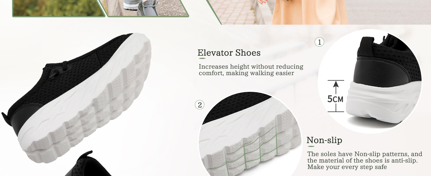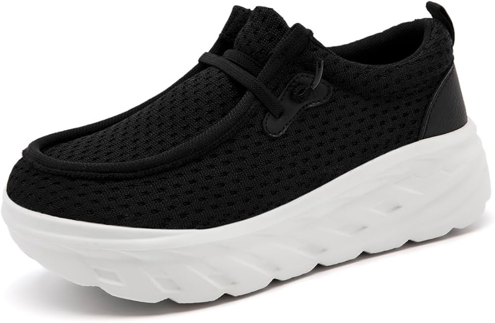 DLWKIPV Womens Platform Walking Sneaker Slip On Wide Toe Casual Thick Sole Shoes Comfortable Elevator Height Increase Breathable Fashion