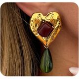 Features vintage heart dangle drop earrings with unique green resin waterdrop accents for an artsy, eye-catching style. Ideal as a Valentine's Day gift or for adding playful charm to date nights, parties, and everyday outfits