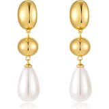 Vintage Pearl Design:Uniquely styled 3-tier shell pearl earrings has a polished curved brass dome, a round golden ball and a teardrop shaped shell pearl dangling below.These pearl prom earrings build a bridge between traditional materials and modern design.