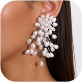 Make your walk down the aisle feel even more special with pearl drops that catch the light as you move. The flower inspired cluster creates a soft spray effect that frames your face and photographs beautifully from every angle.Made for wedding moments and beyond: pair them with a sleek bun, loose waves, or a veil for the ceremony, then keep them on for the reception and future date nights. They also make a thoughtful gift for a bride, bridesmaids, or anyone who loves romantic details.Gift with confidence. These earrings arrive ready to present, making it easy to celebrate engagements, anniversaries, birthdays, Mothers Day, Valentines Day, and holiday gatherings.