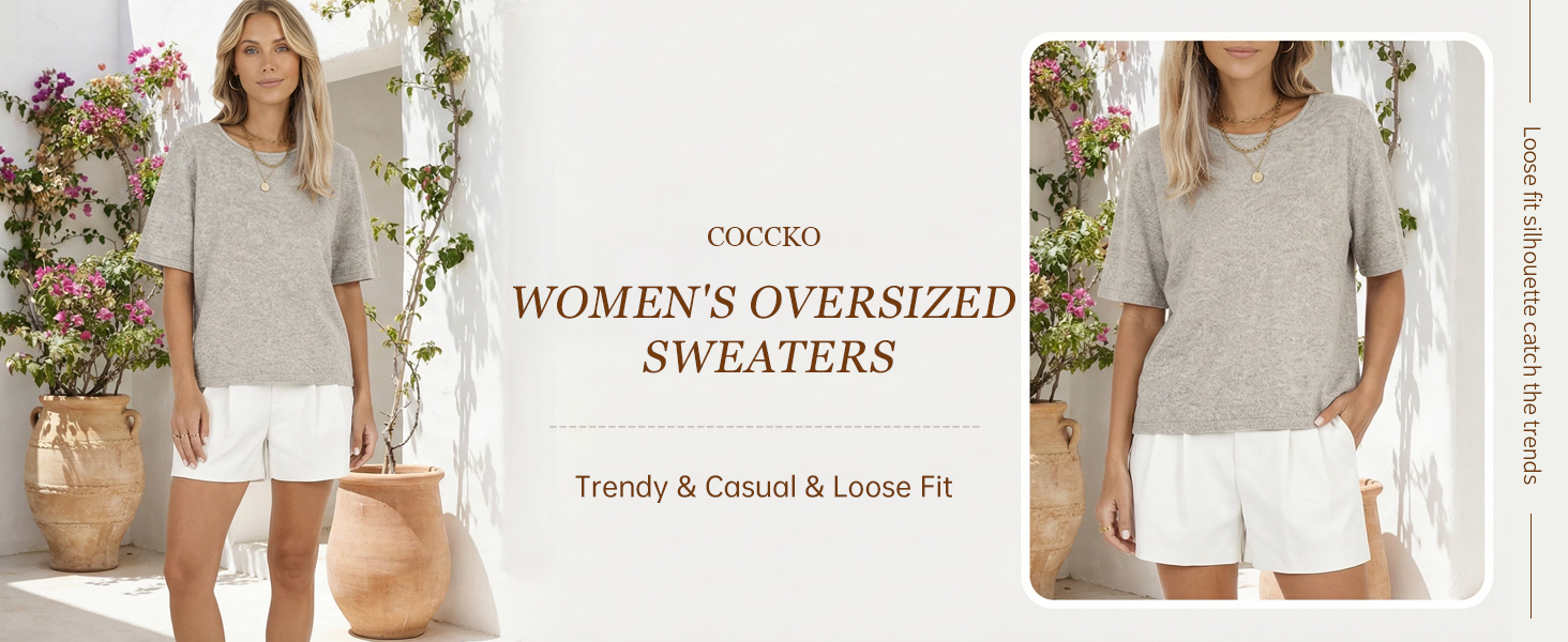 🌸STYLE-Womens oversized pullover sweaters design with classic crewneck, drop shoulder, shorts sleeve shirts top, solid color. The ladies plus size sweater is classic and elegant, make it a must-have item in the wardrobe.