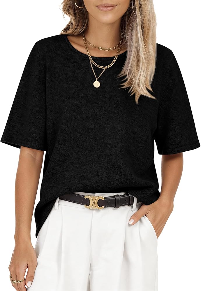 🌸MATERIAL- Crafted from soft, stretchy knitted fabric, these short sleeve sweaters are lightweight, breathable, and skin-friendly, ensuring all-day comfort. Their gentle texture and excellent elasticity make them the ideal choice for the spring-to-summer transition.