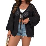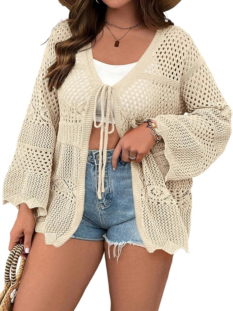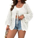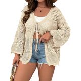 The Women Plus Size Crochet Cardigan is mixed bohe casual style, natural drape,fashionable and casual beach swim coverup ,Unique long sleeve Open Front Cardigan Sweaters,plus size cardigans for women.Spring, summer and autumn essential basic style