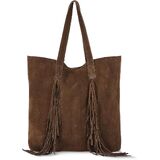 BOHO STATEMENT STYLE. Created for women who love expressive design, the fringe accents and rich suede texture elevate everyday outfits, pairing perfectly with denim, flowing dresses, and layered looks.