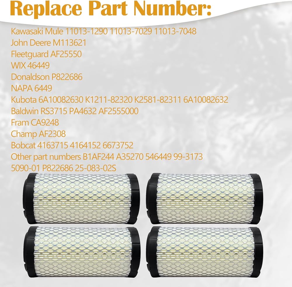Wide Application: Fit for Kawasaki Mule 11013-1290 11013-7029 11013-7048, John Deere M113621, Fleetguard AF25550, WIX 46449, Donaldson P822686, NAPA 6449, Kubota 6A10082630 K1211-82320 K2581-82311 6A10082632