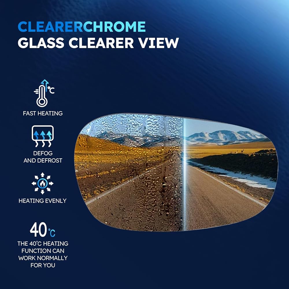 Better Visibility - Heated Mirror Glass Is Heated To Melt Ice And Snow Or To Remove Fog By A Heating Element Behind The Glass. This Side Mirror Replacement Made Constructed Of High Quality Abs Plastic And Glass, Durable, Reliable And The Glass Will Not Haze. Offer Better Visibility, Improving The Safety Of You. Identical Mounting Point With Factory Mirror. Perfectly Fit With The Existing Electrical Wiring.