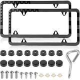 2 PCS American Flag License Plate Frames, Patriotic USA Auto Plate Cover with Free Screws Fasteners Caps and Tool, Rust-Proof Aluminum Car Tag Holder Cover for Front Rear (Black)