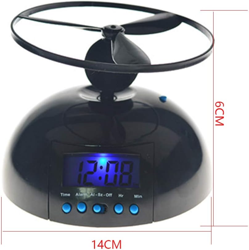 • 【Snooze Alarm Clock】Propeller rotates quickly when the alarm rings, Can fly around the room. The alarm clock can only be switched off by using the propeller in the machine.