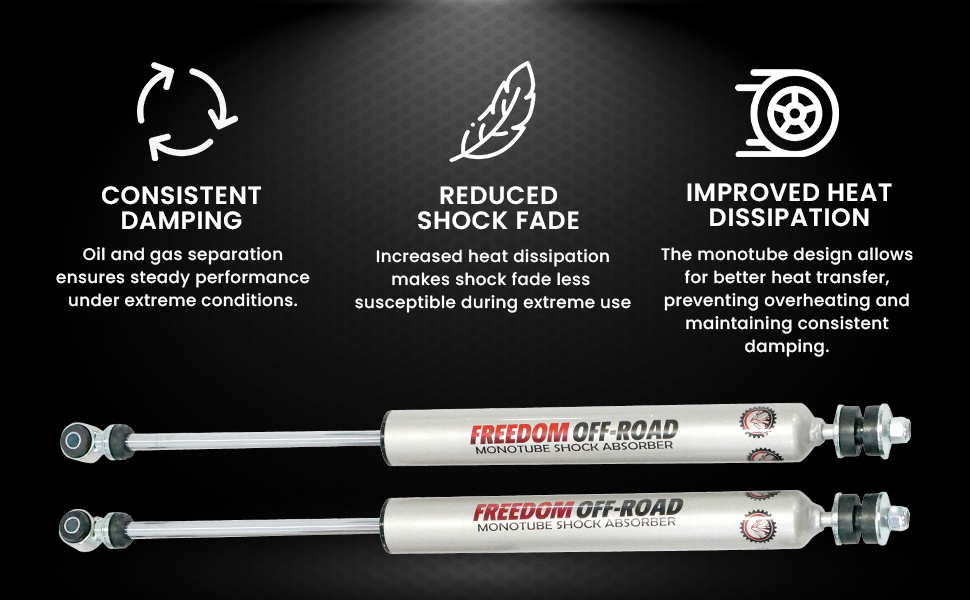 Enhanced Durability: Monotube shocks are built with a single-tube design, making them more robust and less prone to damage from external impacts. Featuring a hardened steel 5/8” chrome-plated shaft