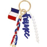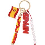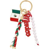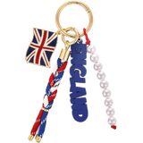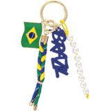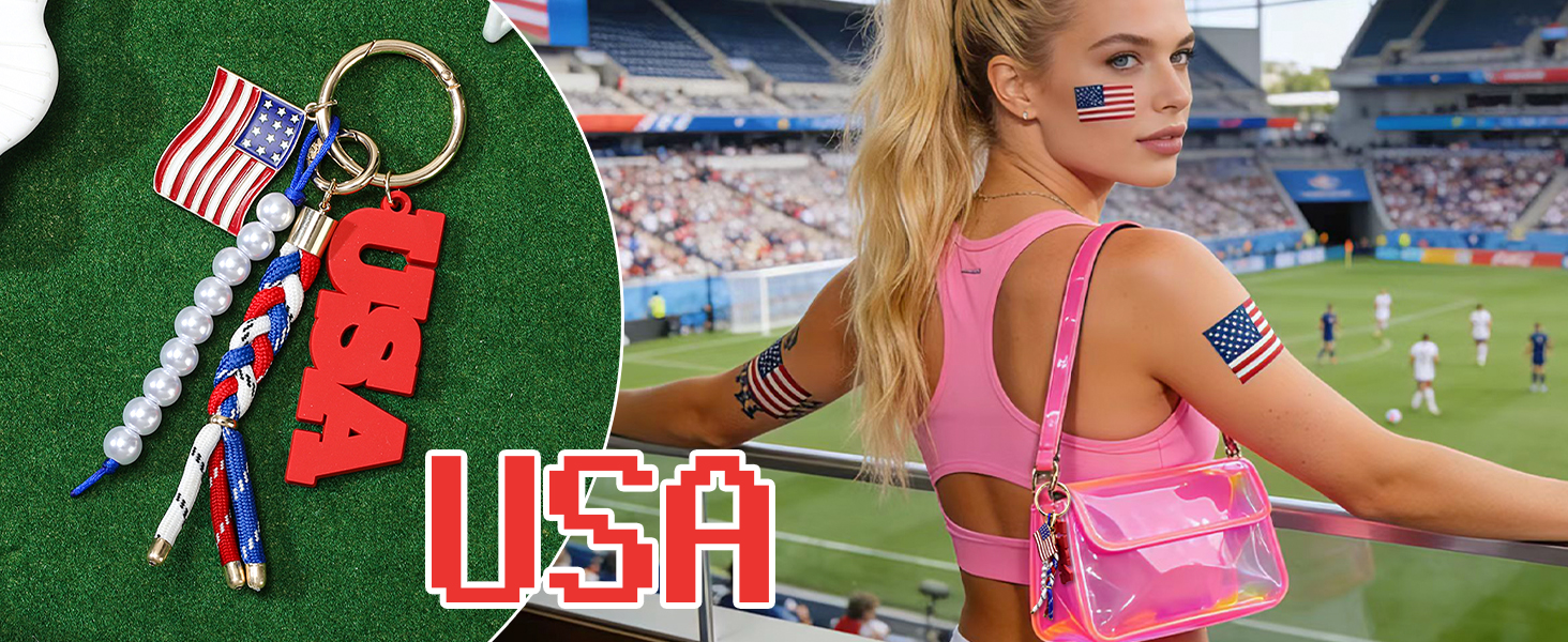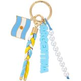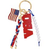 Patriotic USA Bag Charm - Display your American pride with this multi-strand charm featuring the Stars and Stripes flag, genuine pearls, "USA" letter beads, and red-white-blue braided cords assembled on a circular ring. Perfect for bags, keys, and travel gear.