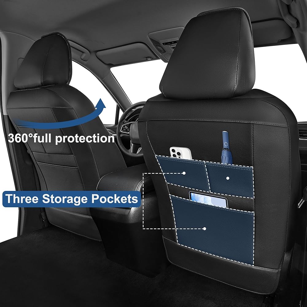 Fashion Design: Leather seat covers for civic design with 3D side wings, which are both comfortable and aesthetically pleasing, giving your car's interior a new look. There are 3 pockets on front seat covers for easily store things.