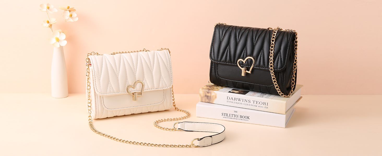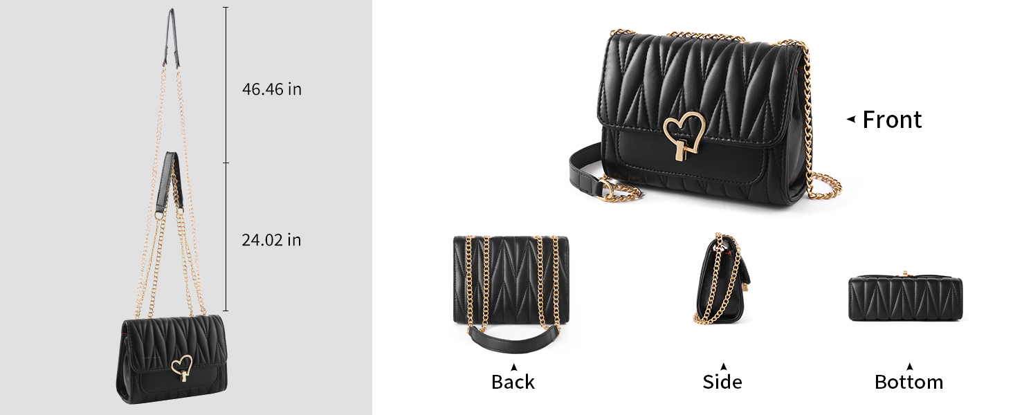 Quilted Design & Luxe Gold Switch: Featuring classic quilting patterns and a shiny golden heart-shaped hardware design, it blends retro elegance with modern chic. The geometric metal details and contrasting splicing add a unique touch, making it a versatile piece for both casual and formal looks