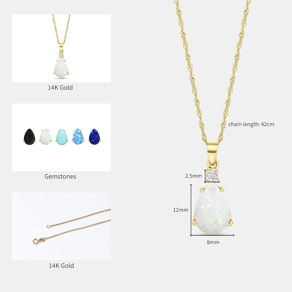 14K Gold Opal Necklace - October Birthstone 8x12mm with 14K Solid Yellow Gold Pendant and 2.5 mm White CZ - Thin 14K Gold Chain, White Opal Gemstone,Handmade Birthday Gift for Classy Women